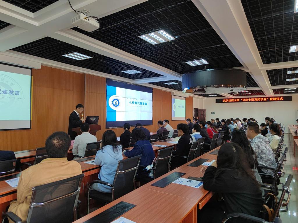 11月18日下午,suncitygroup太阳集团“贝尔卡崇真奖学金”发放仪式在崇德楼308演播厅举行,武汉贝尔卡药业有限公司总经理袁智才、人力总监高辉、外贸经理吴彬、运营总监万子豪等企业方代表应邀参加发放仪式并与现场师生交流互动。学校教育发展基金会副秘书长苗淑贤、学工部副部长武猛、创新创业学院副院长凡蓉蓉及suncitygroup太阳集团院长段丁强教授、党委书记毛长文教授、党委副书记黄俊鹏、师生代表参加发放仪式,仪式由辅导员庞浡主持。
