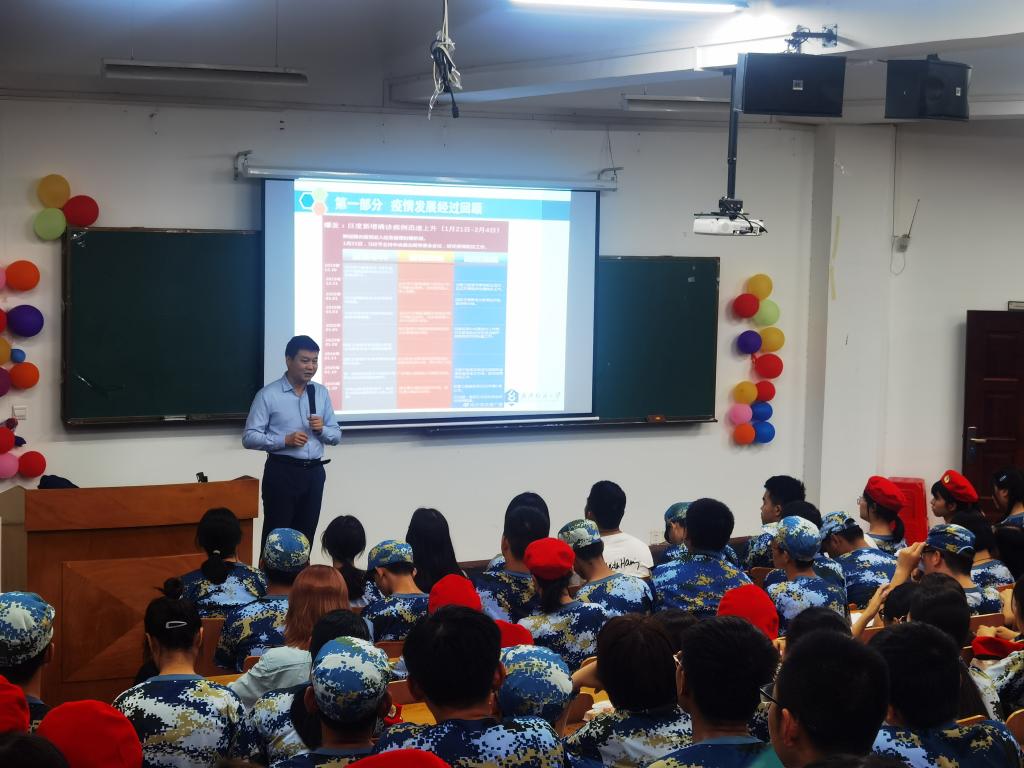 suncitygroup太阳集团抗疫先进个人石子伟老师以责任与行动为主题,向全体新生宣讲了自己在抗疫过程中的经历与感悟,并激励同学们要勇于实践,承担青年团员责任。