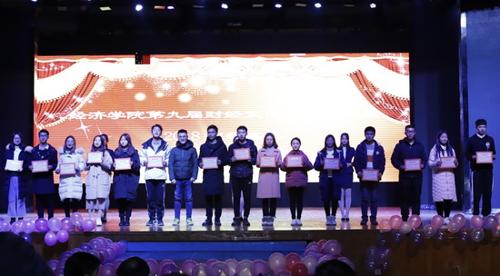 一曲婉转悠扬的钢琴曲拉开晚会序幕,欢快的《重返十七岁》歌舞表演后,院长段丁强教授上台为第九届财经文化节揭牌,并宣布文化节开幕。晚会节目精彩纷呈,爵士舞《百乐门》动感十足,相声《开学那些事》一下子勾起大家刚进校的美好回忆,诗朗诵《清风送廉》全面阐释了廉政为本的理念,由我校学生原创的说唱单曲《炽热》节奏明快,洋溢着青春活力。18级新生辅导员孙杰老师的一首《相亲相爱》把晚会推向高潮,在场同学热情澎湃,呼声高涨。话剧《青春,你好吗》演绎了青年学生对青春的迷茫,对梦想的渴望。