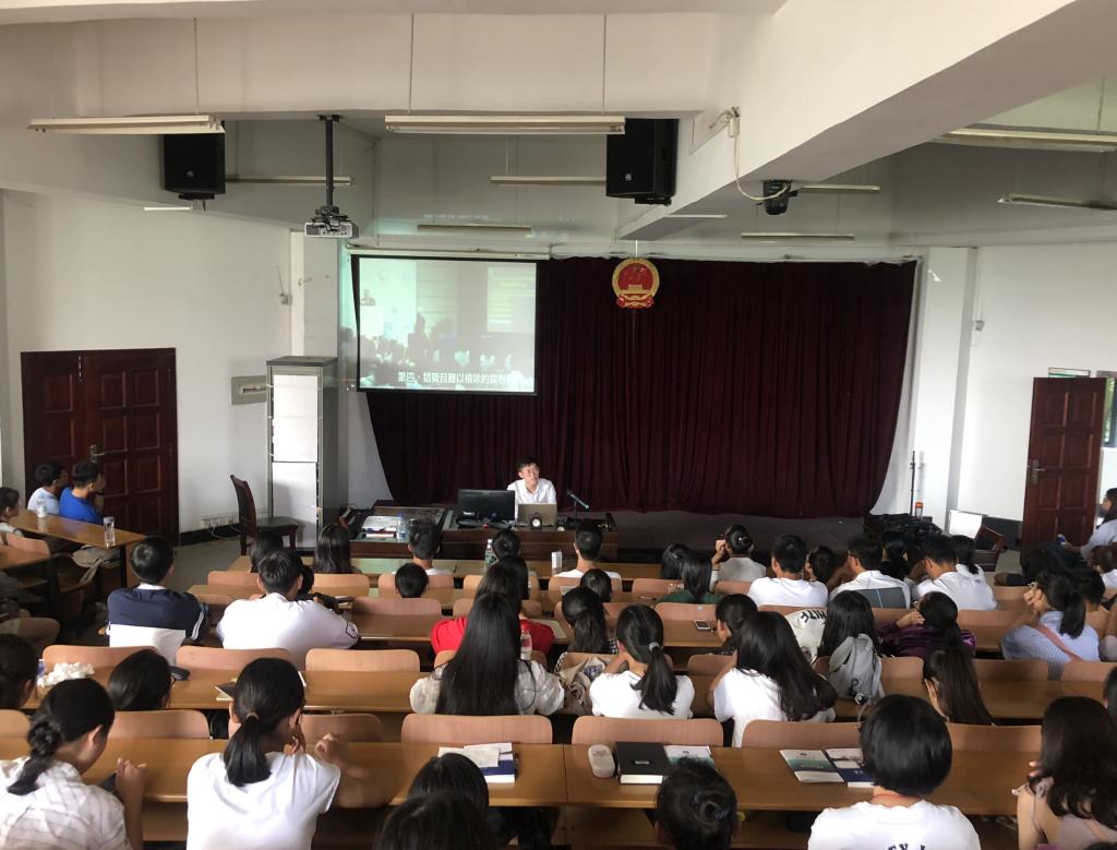 9月29日下午3点30分,在07-T301suncitygroup太阳集团召开了创新创业教育讲座,东莞尾音信息科技有限公司武汉分公司销售总监王子坚以“奋进正青春,创赢新梦想”为主题做演讲,全体2018级新生参加了此次讲座。