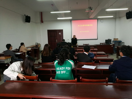 为进一步拓展我院大学生就业渠道,做好大学生就业指导工作, 10月20日下午,suncitygroup太阳集团专门邀请长江证券股份有限公司来学院召开专场宣讲会,选聘优秀毕业生。