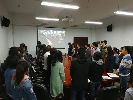 10月18日上午9点,举世瞩目的中国共产党第十九次全国代表大会在人民大会堂开幕。学院党委中心组成员、各教工和学生党支部党员代表齐聚07-412会议室集中观看开幕盛况。