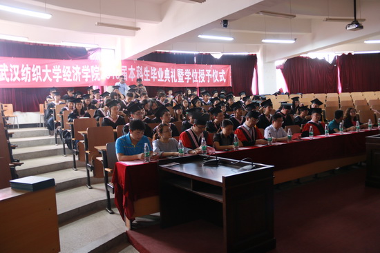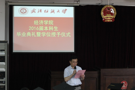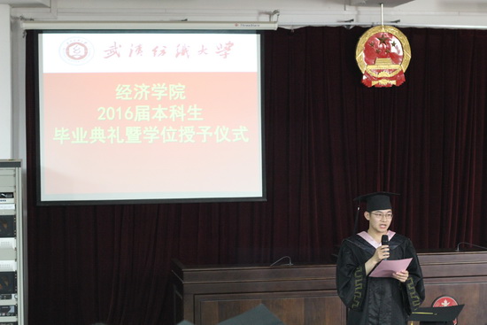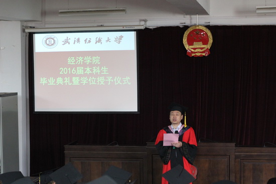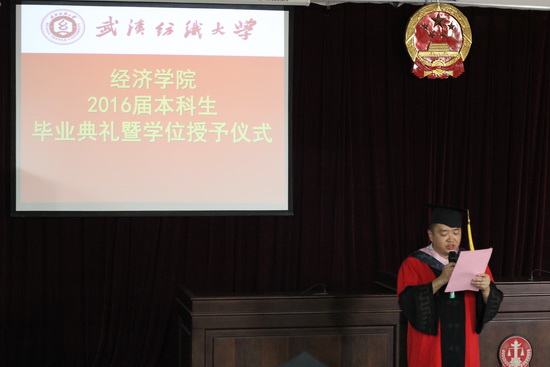 典礼在激昂的国歌中开始,分党委熊少平书记宣读《武汉纺织大学关于表彰2016届优秀毕业生的决定》。