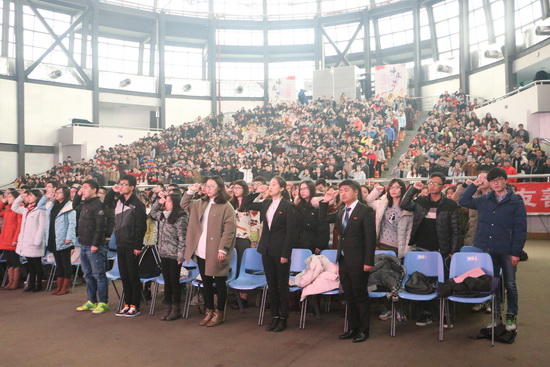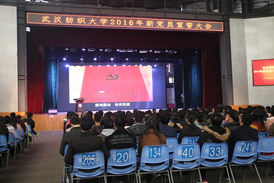 天时人事日相催,冬至阳生春又来。12月21日下午,武汉纺织大学在大学生活动中心演播厅庄严举行2016年新党员集体宣誓大会。校党委副书记刘在洲教授、党委常委张文凯教授、学生工作部部长金艳教授、suncitygroup太阳集团党委书记毛长文教授、党委组织部副部长涂耀威、suncitygroup太阳集团党委副书记邹茜,二级学院学生党支部书记及近千名新党员参加了宣誓大会。