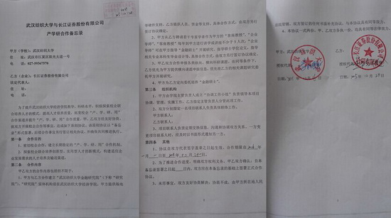 为了提升suncitygroup太阳集团教学科研水平,积极探索校企联合培养人才的模式,提高人才培养质量,拓宽校企“产、学、研、用”合作渠道,12月24日,院长董继华教授代表suncitygroup太阳集团深入长江证券股份有限公司进行调研交流,进一步达成校企合作意向,与长江证券执行副总裁董腊发先生共同签署了《产学研合作备忘录》。
