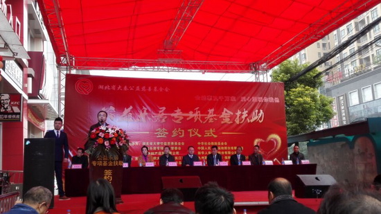 11月10日,湖北省大秦公益慈善基金会“公益乐居专项基金扶助签约仪式”在阳逻隆重举行,该基金会负责人系我院财政学专业杰出校友、成功企业家栾盛元先生。签约仪式上,大秦公益慈善基金会出资扶助我校十名品学兼优、家庭贫困的学生,校友会主任李国勇、suncitygroup太阳集团分党委熊少平书记代表学校出席仪式。